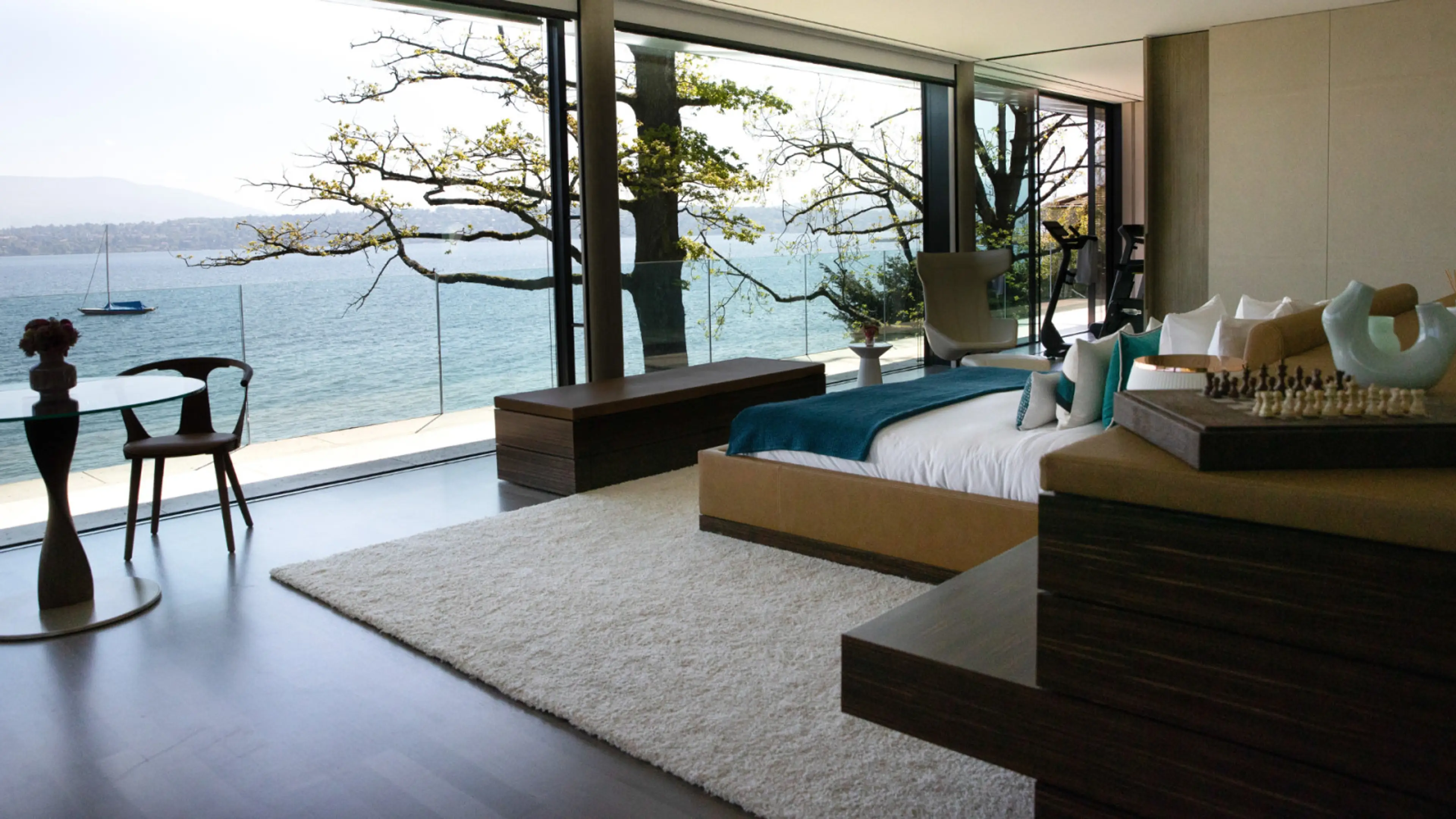 On the shore of the Lake Geneva Panoramic views over the lake, mountains and Mont Blanc Living room 160 m2 garden and lake view Master room with panoramic view on the lake Private garden and terrace Kitchen equipped Private elevator Swimming corridor -- Services Limousine service for your arrival an...